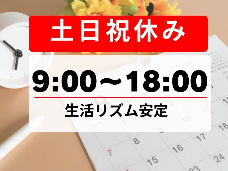 職場環境・雰囲気 | 職場環境 【職場について】 ■ 応募資格 ■ 【未経験OK!】 ・PCの基本操作ができればOK ・スマホ操作に抵抗がない方 ・コツコツ取り組む仕事が好きな方 【あると嬉しいスキル】 ・タイピングに自信がある ・ルーティン作業が得意 ・細かいチェック作業が好き ■ 職場の雰囲気 ■ ・優しい先輩がしっかりサポート ・同じ業務をしているメンバー多数 ・落ち着いた雰囲気で集中して作業できる ■ こんな人が活躍中 ■ 「未経験から少しIT寄りの仕事がしてみたい」 「専門用語が不安でも、コツコツ作業なら得意!」 そんなスタッフが多数活躍中です◎ 【受動喫煙対応】 受動喫煙対策あり(屋内禁煙) |